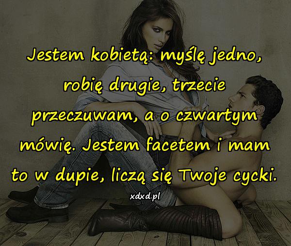 Jestem kobietą: myślę jedno, robię drugie, trzecie przeczuwam, a o czwartym mówię. Jestem facetem i mam to w dupie, liczą się Twoje cycki.