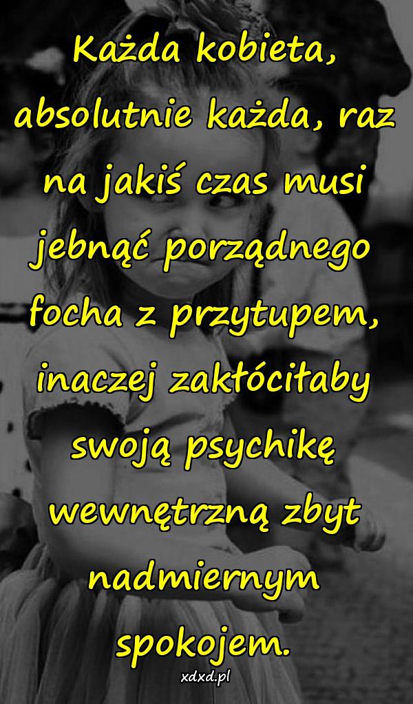 Każda kobieta, absolutnie każda, raz na jakiś czas musi jebnąć porządnego focha z przytupem, inaczej zakłóciłaby swoją psychikę wewnętrzną zbyt nadmiernym spokojem.
