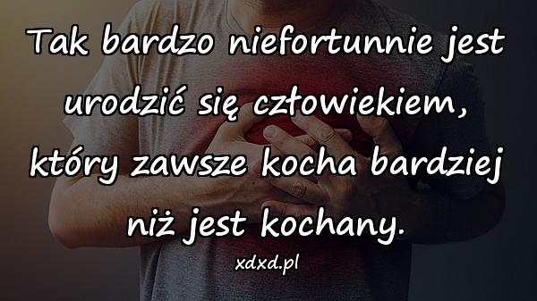 Tak bardzo niefortunnie jest urodzić się człowiekiem, który zawsze kocha bardziej niż jest kochany.