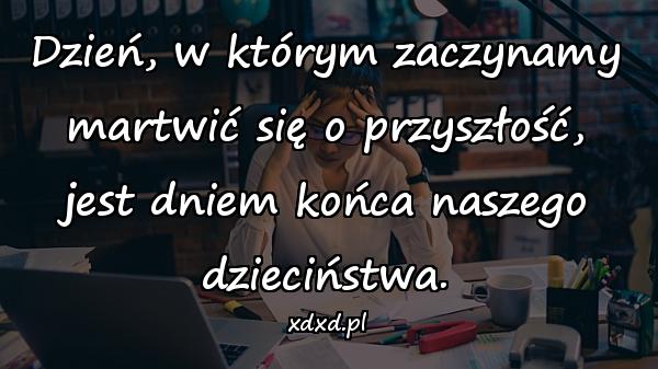 Dzień, w którym zaczynamy martwić się o przyszłość, jest dniem końca naszego dzieciństwa.