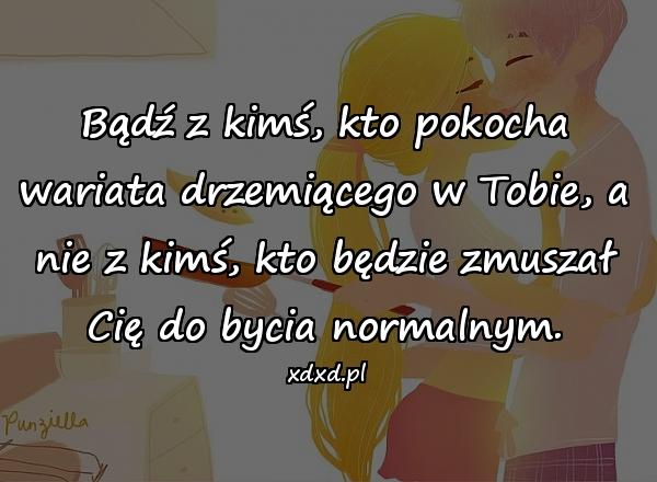 Bądź z kimś, kto pokocha wariata drzemiącego w Tobie, a nie z kimś, kto będzie zmuszał Cię do bycia normalnym.