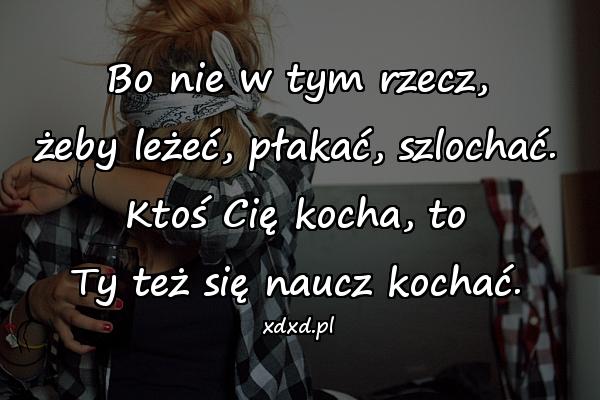 Bo nie w tym rzecz, żeby leżeć, płakać, szlochać. Ktoś Cię kocha, to Ty też się naucz kochać.