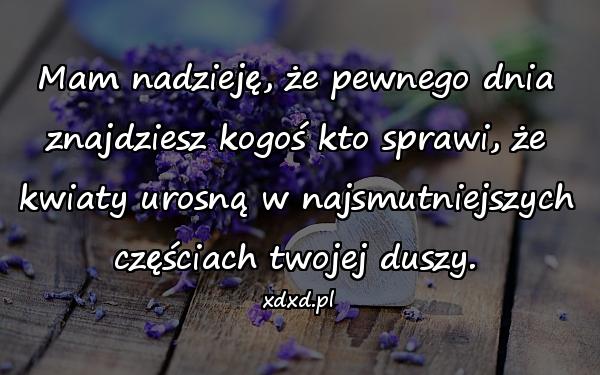 Mam nadzieję, że pewnego dnia znajdziesz kogoś kto sprawi, że kwiaty urosną w najsmutniejszych częściach twojej duszy.