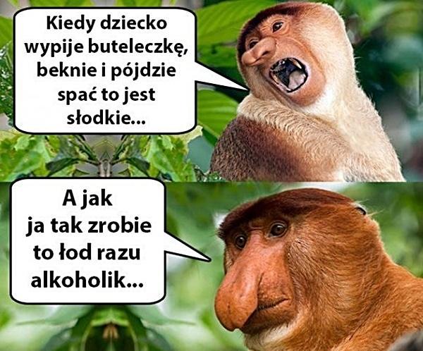 Kiedy dziecko wypije buteleczkę, beknie i pójdzie spać to jest słodkie… A ja tak zrobię to łod razu alkoholik…
