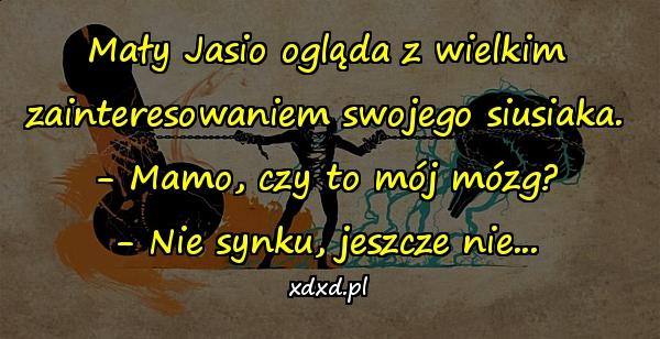 Mały Jasio ogląda z wielkim zainteresowaniem swojego siusiaka.n- Mamo, czy to mój mózg?n- Nie synku, jeszcze nie…