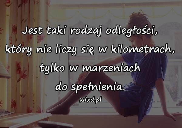 Home Cytaty Cytaty o życiu Marzenia do spełnienia 1 rok ago 1 rok ago Cytaty o życiu Marzenia do spełnienia autor: admin 21wyświetleń 814 814 points Jest taki rodzaj odległości, który nie liczy się w kilometrach, tylko w marzeniach do spełnienia. Pobierz obrazek Post PaginationPoprzedniPreviousNastępnyNext aforyzmy, besty, cytat, cytaty, cytaty o życiu, demot, demotywator, kobieta, marzenia, mem, memy, mężczyzna, obrazki, odległość, sentencje, życie Twoja reakcja? zmieszany 0 zmieszany porażka 0 porażka zabawne 0 zabawne zły 0 zły miłośc 0 miłośc fajne 0 fajne lol 0 lol omg 0 omg 0 komentarzy Anuluj pisanie odpowiedziTwój adres e-mail nie zostanie opublikowany. Wymagane pola są oznaczone * Zapamiętaj moje dane w tej przeglądarce podczas pisania kolejnych komentarzy.