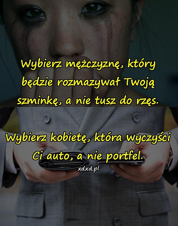 Wybierz mężczyznę, który będzie rozmazywał Twoją szminkę, a nie tusz do rzęs. Wybierz kobietę, która wyczyści Ci auto, a nie portfel.
