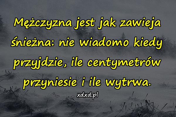 Mężczyzna jest jak zawieja śnieżna: nie wiadomo kiedy przyjdzie, ile centymetrów przyniesie i ile wytrwa.