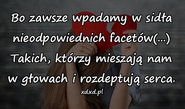 Bo zawsze wpadamy w sidła nieodpowiednich facetów(…) Takich, którzy mieszają nam w głowach i rozdeptują serca.