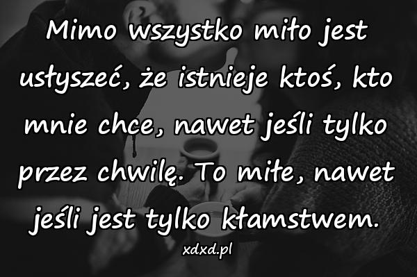 Mimo wszystko miło jest usłyszeć, że istnieje ktoś, kto mnie chce, nawet jeśli tylko przez chwilę. To miłe, nawet jeśli jest tylko kłamstwem.