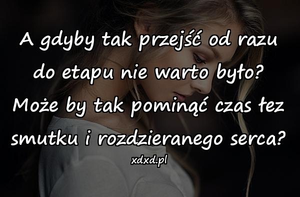 A gdyby tak przejść od razu do etapu nie warto było? Może by tak pominąć czas łez smutku i rozdzieranego serca?