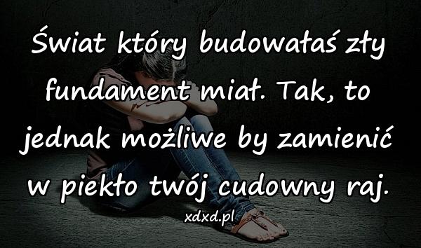 Home Cytaty Cytaty o życiu Możliwe by zamienić w piekło twój cudowny raj 2 lata ago 2 lata ago Cytaty o życiu Możliwe by zamienić w piekło twój cudowny raj autor: admin 10wyświetleń 840 840 points Świat który budowałaś zły fundament miał. Tak, to jednak możliwe by zamienić w piekło twój cudowny raj. Pobierz obrazek Post PaginationPoprzedniPreviousNastępnyNext aforyzmy, besty, cytat, cytaty, cytaty o życiu, fundament, lovsy, mem, memy, obrazki, piekło, raj, sentencje, świat, te myśli, życie Twoja reakcja? zmieszany 0 zmieszany porażka 0 porażka zabawne 0 zabawne zły 0 zły miłośc 0 miłośc fajne 0 fajne lol 0 lol omg 0 omg 0 komentarzy Anuluj pisanie odpowiedziTwój adres e-mail nie zostanie opublikowany. Wymagane pola są oznaczone * Zapamiętaj moje dane w tej przeglądarce podczas pisania kolejnych komentarzy.