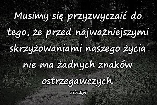 Musimy się przyzwyczaić do tego, że przed najważniejszymi skrzyżowaniami naszego życia nie ma żadnych znaków ostrzegawczych.