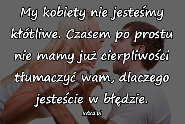 My kobiety nie jesteśmy kłótliwe. Czasem po prostu nie mamy już cierpliwości tłumaczyć wam, dlaczego jesteście w błędzie.