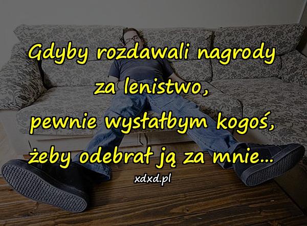 Gdyby rozdawali nagrody za lenistwo, pewnie wysłałbym kogoś, żeby odebrał ją za mnie…