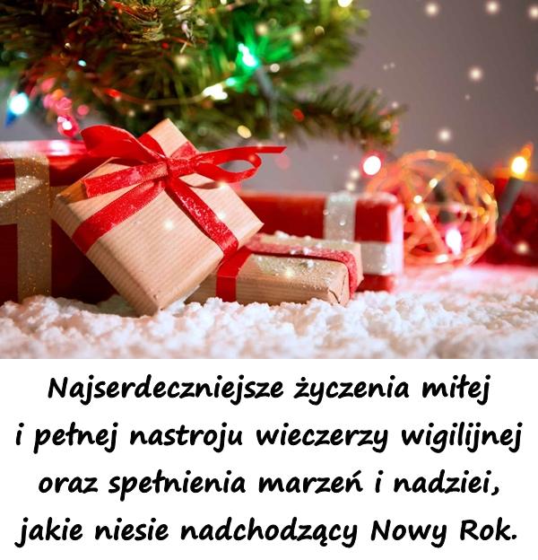 Najserdeczniejsze życzenia miłej i pełnej nastroju wieczerzy wigilijnej oraz spełnienia marzeń i nadziei, jakie niesie nadchodzący Nowy Rok.