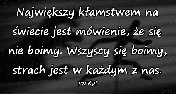 Największy kłamstwem na świecie jest mówienie, że się nie boimy. Wszyscy się boimy, strach jest w każdym z nas.
