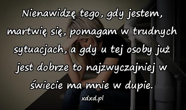 Nienawidzę tego, gdy jestem, martwię się, pomagam w trudnych sytuacjach, a gdy u tej osoby już jest dobrze to najzwyczajniej w świecie ma mnie w dupie.