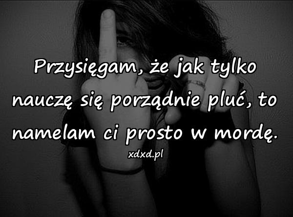 Przysięgam, że jak tylko nauczę się porządnie pluć, to namelam ci prosto w mordę.
