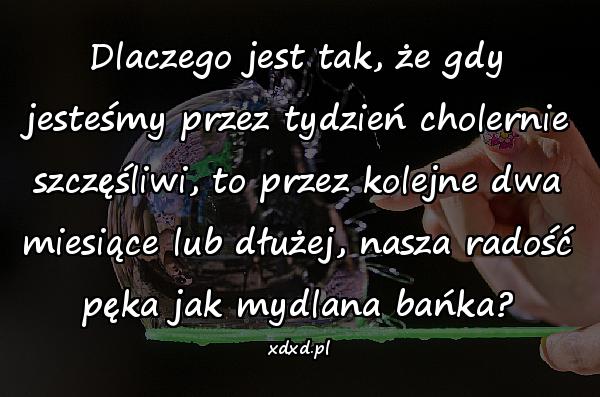 Dlaczego jest tak, że gdy jesteśmy przez tydzień cholernie szczęśliwi, to przez kolejne dwa miesiące lub dłużej, nasza radość pęka jak mydlana bańka?