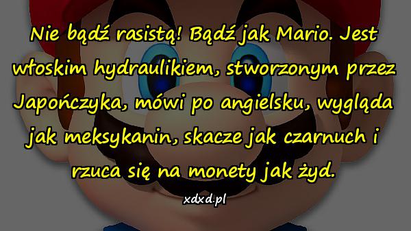 Nie bądź rasistą! Bądź jak Mario. Jest włoskim hydraulikiem, stworzonym przez Japończyka, mówi po angielsku, wygląda jak meksykanin, skacze jak czarnuch i rzuca się na monety jak żyd.