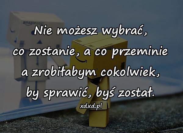 Nie możesz wybrać, co zostanie, a co przeminie a zrobiłabym cokolwiek, by sprawić, byś został.