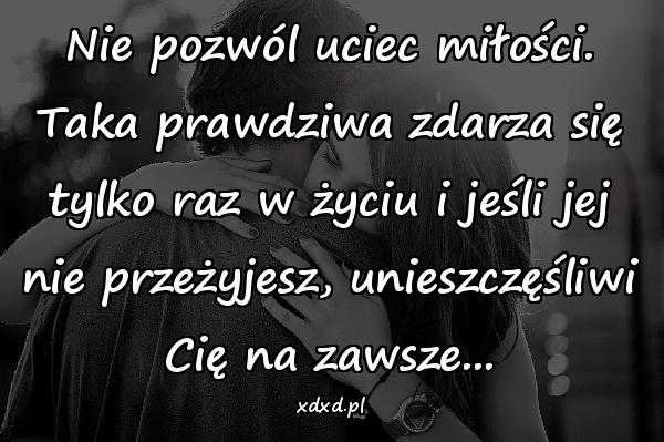 Nie pozwól uciec miłości. Taka prawdziwa zdarza się tylko raz w życiu i jeśli jej nie przeżyjesz, unieszczęśliwi Cię na zawsze…