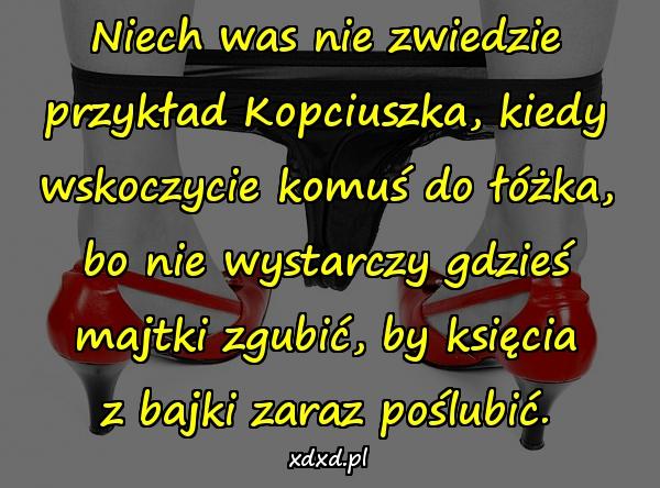 Niech was nie zwiedzie przykład Kopciuszka, kiedy wskoczycie komuś do łóżka, bo nie wystarczy gdzieś majtki zgubić, by księcianz bajki zaraz poślubić.