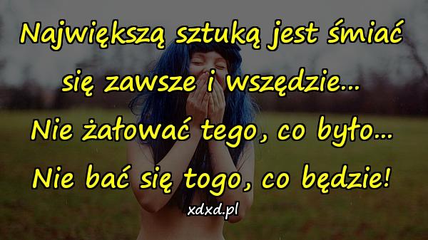 Największą sztuką jest śmiać się zawsze i wszędzie… Nie żałować tego, co było… Nie bać się togo, co będzie!