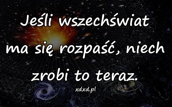 Home Cytaty Cytaty o życiu Niech zrobi to teraz 1 rok ago 1 rok ago Cytaty o życiu Niech zrobi to teraz autor: admin 11wyświetleń 811 811 points Jeśli wszechświat ma się rozpaść, niech zrobi to teraz. Pobierz obrazek Post PaginationPoprzedniPreviousNastępnyNext aforyzmy, beesty, besty, cytat, cytaty, cytaty o życiu, depresja, dół, katastrofa, mem, memy, obrazki, rozpad, samopoczucie, sentencje, świat, załamanie, życie Twoja reakcja? zmieszany 0 zmieszany porażka 0 porażka zabawne 0 zabawne zły 0 zły miłośc 0 miłośc fajne 0 fajne lol 0 lol omg 0 omg 0 komentarzy Anuluj pisanie odpowiedziTwój adres e-mail nie zostanie opublikowany. Wymagane pola są oznaczone * Zapamiętaj moje dane w tej przeglądarce podczas pisania kolejnych komentarzy.