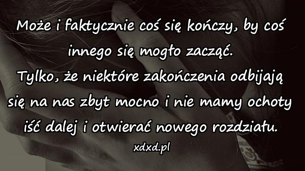 Może i faktycznie coś się kończy, by coś innego się mogło zacząć. Tylko, że niektóre zakończenia odbijają się na nas zbyt mocno i nie mamy ochoty iść dalej i otwierać nowego rozdziału.