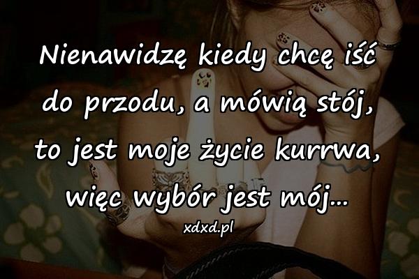 Nienawidzę kiedy chcę iść do przodu, a mówią stój,nto jest moje życie kurrwa,nwięc wybór jest mój…