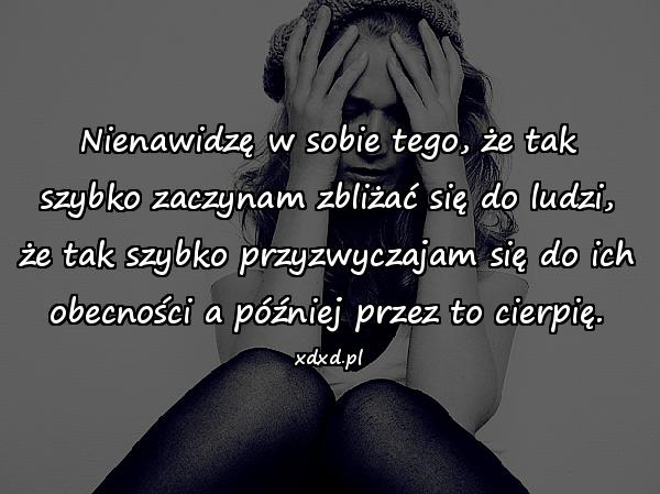 Nienawidzę w sobie tego, że tak szybko zaczynam zbliżać się do ludzi, że tak szybko przyzwyczajam się do ich obecności a później przez to cierpię.