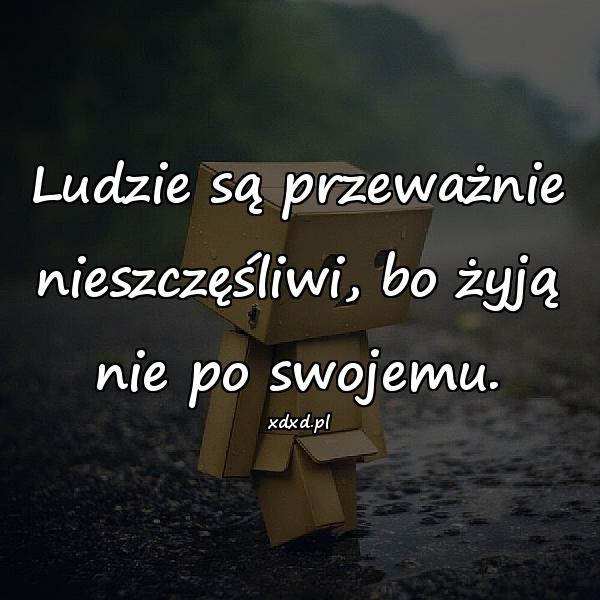 Home Cytaty Cytaty o życiu Nieszczęśliwi żyją pod dyktando otoczenia 1 rok ago 1 rok ago Cytaty o życiu Nieszczęśliwi żyją pod dyktando otoczenia autor: admin 18wyświetleń 836 836 points Ludzie są przeważnie nieszczęśliwi, bo żyją nie po swojemu. Pobierz obrazek Post PaginationPoprzedniPreviousNastępnyNext aforyzmy, besty, cytat, cytaty, cytaty o życiu, indywidualizm, lovsy, mem, memy, obrazki, sentencje, smutek, szczęście, te myśli, życie Twoja reakcja? zmieszany 0 zmieszany porażka 0 porażka zabawne 0 zabawne zły 0 zły miłośc 0 miłośc fajne 0 fajne lol 0 lol omg 0 omg 0 komentarzy Anuluj pisanie odpowiedziTwój adres e-mail nie zostanie opublikowany. Wymagane pola są oznaczone * Zapamiętaj moje dane w tej przeglądarce podczas pisania kolejnych komentarzy.