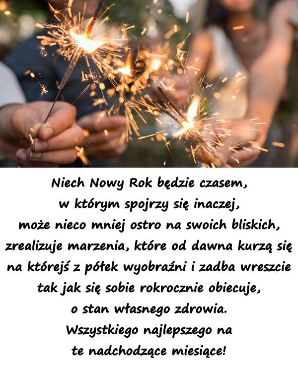 Niech Nowy Rok będzie czasem, w którym spojrzy się inaczej, może nieco mniej ostro na swoich bliskich, zrealizuje marzenia, które od dawna kurzą się na którejś z półek wyobraźni i zadba wreszcie tak jak się sobie rokrocznie obiecuje, o stan własnego zdrowia. Wszystkiego najlepszego na te nadchodzące miesiące!
