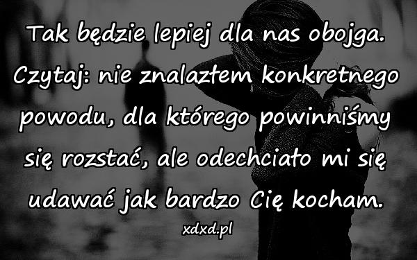 Tak będzie lepiej dla nas obojga. Czytaj: nie znalazłem konkretnego powodu, dla którego powinniśmy się rozstać, ale odechciało mi się udawać jak bardzo Cię kocham.
