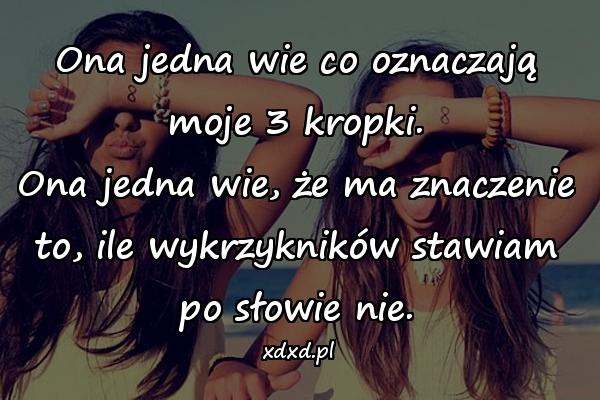 Ona jedna wie co oznaczają moje 3 kropki. Ona jedna wie, że ma znaczenie to, ile wykrzykników stawiam po słowie nie.