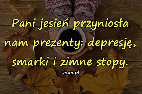 Home Humor Śmieszne obrazki Pani jesień przyniosła nam prezenty 2 lata ago 2 lata ago Śmieszne obrazki Pani jesień przyniosła nam prezenty autor: admin 13wyświetleń 828 828 points Pani jesień przyniosła nam prezenty: depresję, smarki i zimne stopy. Pobierz obrazek Post PaginationPoprzedniPreviousNastępnyNext besty, depresja, humor, jesień, mem, memy, smarki, śmieszne, śmieszne obrazki, śmieszne teksty, zimne stopy Twoja reakcja? zmieszany 0 zmieszany porażka 0 porażka zabawne 0 zabawne zły 0 zły miłośc 0 miłośc fajne 0 fajne lol 0 lol omg 0 omg 0 komentarzy Anuluj pisanie odpowiedziTwój adres e-mail nie zostanie opublikowany. Wymagane pola są oznaczone * Zapamiętaj moje dane w tej przeglądarce podczas pisania kolejnych komentarzy.