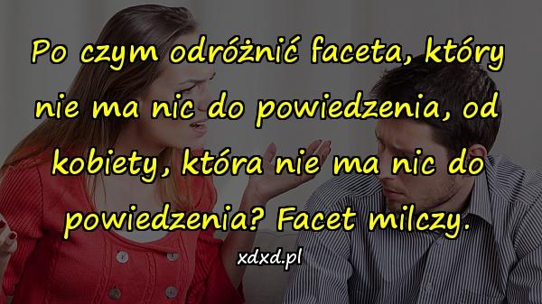 Po czym odróżnić faceta, który nie ma nic do powiedzenia, od kobiety, która nie ma nic do powiedzenia? Facet milczy.
