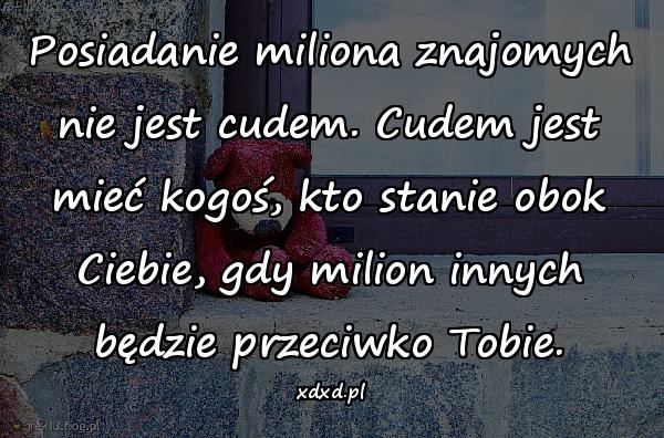 Posiadanie miliona znajomych nie jest cudem. Cudem jest mieć kogoś, kto stanie obok Ciebie, gdy milion innych będzie przeciwko Tobie.