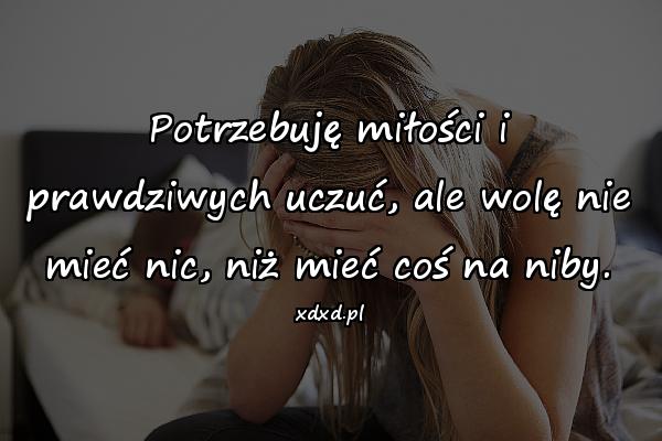 Potrzebuję miłości i prawdziwych uczuć, ale wolę nie mieć nic, niż mieć coś na niby.