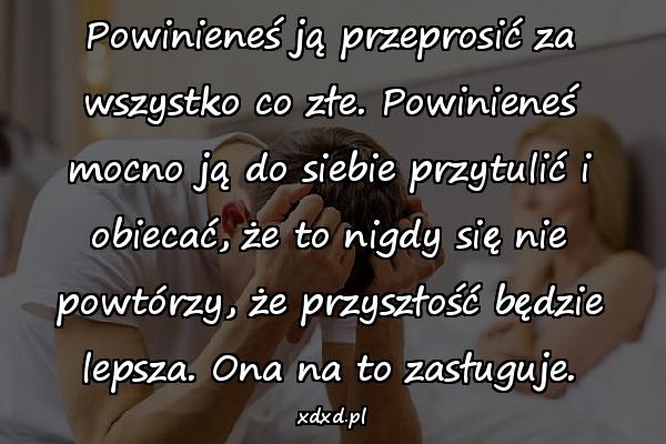 Powinieneś ją przeprosić za wszystko co złe. Powinieneś mocno ją do siebie przytulić i obiecać, że to nigdy się nie powtórzy, że przyszłość będzie lepsza. Ona na to zasługuje.