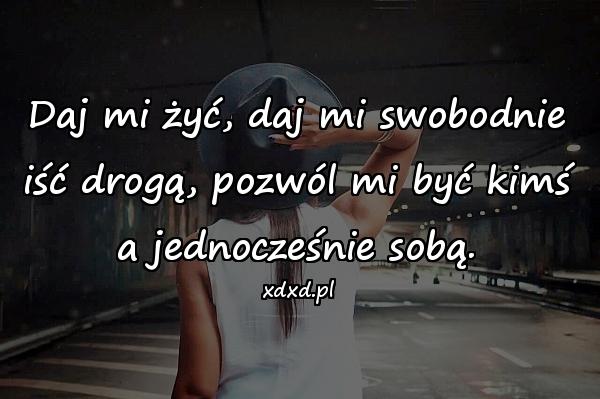 Daj mi żyć, daj mi swobodnie iść drogą, pozwól mi być kimś a jednocześnie sobą.