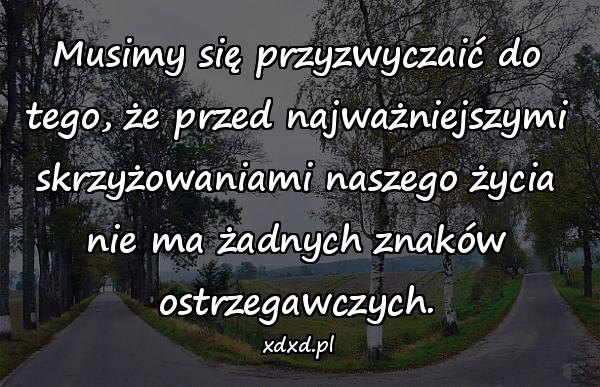 Musimy się przyzwyczaić do tego, że przed najważniejszymi skrzyżowaniami naszego życia nie ma żadnych znaków ostrzegawczych.