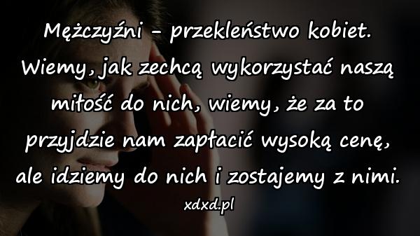 Mężczyźni – przekleństwo kobiet. Wiemy, jak zechcą wykorzystać naszą miłość do nich, wiemy, że za to przyjdzie nam zapłacić wysoką cenę, ale idziemy do nich i zostajemy z nimi.
