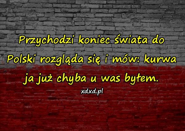 Home Humor Śmieszne obrazki Przychodzi koniec świata do Polski 3 lata ago 3 lata ago Śmieszne obrazki Przychodzi koniec świata do Polski autor: admin 23wyświetlenia 826 826 points Przychodzi koniec świata do Polski rozgląda się i mów: kurwa ja już chyba u was byłem. Pobierz obrazek Post PaginationPoprzedniPreviousNastępnyNext besty, demot, demotywator, humor, koniec, mem, memy, polska, śmieszne, śmieszne obrazki, śmieszne teksty, świat Twoja reakcja? zmieszany 0 zmieszany porażka 0 porażka zabawne 0 zabawne zły 0 zły miłośc 0 miłośc fajne 0 fajne lol 0 lol omg 0 omg 0 komentarzy Anuluj pisanie odpowiedziTwój adres e-mail nie zostanie opublikowany. Wymagane pola są oznaczone * Zapamiętaj moje dane w tej przeglądarce podczas pisania kolejnych komentarzy.