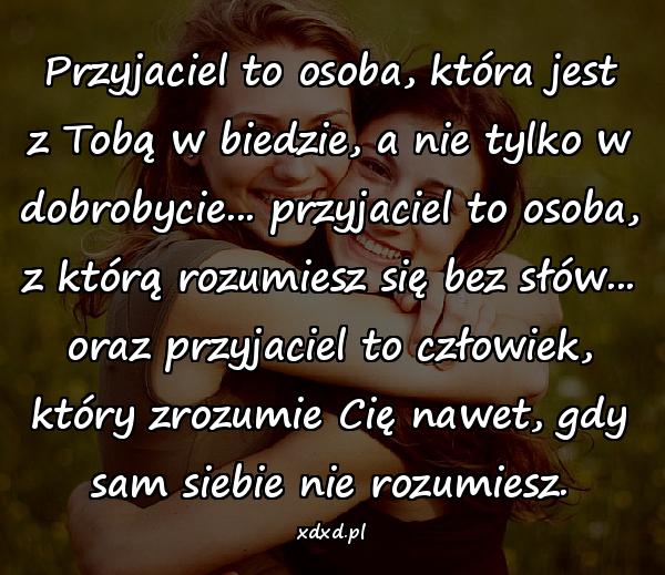Przyjaciel to osoba, która jest z Tobą w biedzie, a nie tylko w dobrobycie… przyjaciel to osoba, z którą rozumiesz się bez słów… oraz przyjaciel to człowiek, który zrozumie Cię nawet, gdy sam siebie nie rozumiesz.