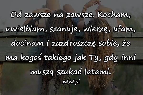 Od zawsze na zawsze. Kocham, uwielbiam, szanuje, wierzę, ufam, docinam i zazdroszczę sobie, że ma kogoś takiego jak Ty, gdy inni muszą szukać latami.