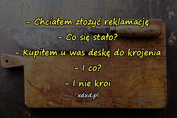 – Chciałem złożyć reklamację – Co się stało? – Kupiłem u was deskę do krojenia – I co? – I nie kroi