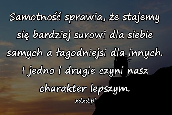 Samotność sprawia, że stajemy się bardziej surowi dla siebie samych a łagodniejsi dla innych. I jedno i drugie czyni nasz charakter lepszym.